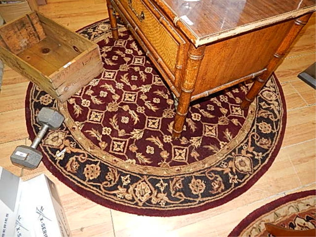 AREA CARPET - WOOL PILE - FLORAL PATTERN - 5' DIAMETER - BLACK/BLUE AND CREAM