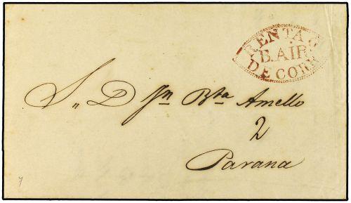 1852 (14-Abril) BUENOS AIRES a PARANA. Marca RENTA DE CORREOS/B. AIR en rojo (Kn 13).