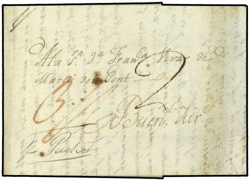 1827 (24-Dic.) CADIZ (España) a BUENOS AIRES. Manuscrito "P. Packet" y tarifa "3/6".