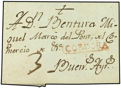 1805 (16-Enero). CORDOBA a BUENOS AIRES. Marca lineal CORDOBA en rojo.