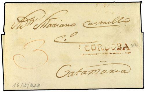 1828 (16-5) CORDOBA a CATAMARCA. Marca CORDOBA en rojo (Kn 1).