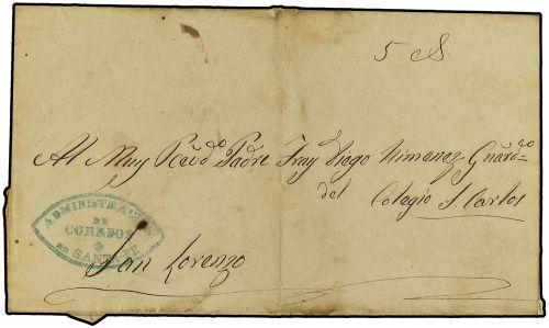 (1856 CA.) Envuelta circulada a SAN LORENZO. Marca ADMINISTRACION / DE CORREOS / DE SANTA FE en azul.