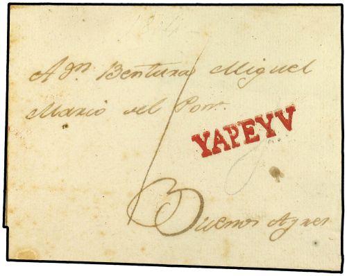 (1800 CA.) Envuelta dirigida a BUENOS AIRES. Marca YAPEYV en rojo. Magnífica y rarísima, sólo dos conocidas.