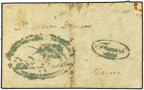 (1857 CA.) FRONTAL. Marca en color azul NUEVA MENSAJERIAS NACIONALES DE MERLINO Y CAMPANELLA.
