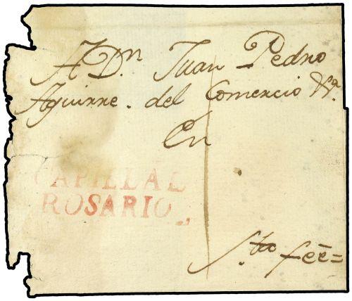 (1800 CA.) FRONTAL circulado a STA. FEE. Marca CAPILLA D./ROSARIO. MUY RARA.