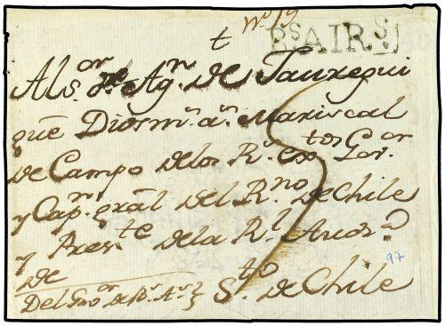 (1778 CA.) FRONTAL dirigido a STGO. DE CHILE. Marca Bs AIRs en color azul verdoso. MAGNIFICA Y MUY RARA.