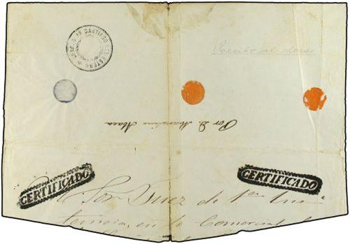 (1860 CA.) Fragmento de carta certificada, marcas lineales CERTIFICADO y circular CORREO DE SANTIAGO DEL ESTERO, "recibi" al dorso.