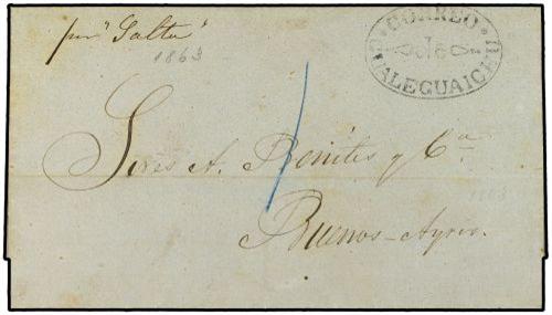 1863 (11-Febrero) GUALEGUAICHU a BUENOS AYRES. Marca CORREO / DE / GUALEGUAICHU en negro (Kn 5).