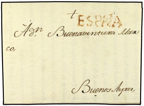 1804 (16-Junio) LA CORUÑA a BUENOS AIRES. Marca ESPAÑA aplicada en La Coruña.
