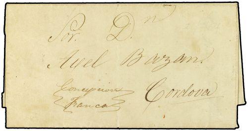 1857 (26-Julio) RIO CUARTO a CORDOBA. Marca manuscrita "CONCEPCION FRANCA".