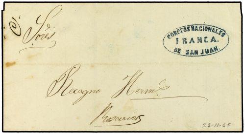 1865 (28-Novi.) S. JUAN a ROSARIO. Marca ovalada CORREOS NACIONALES FRANCA DE SAN JUAN (Kn.3)
