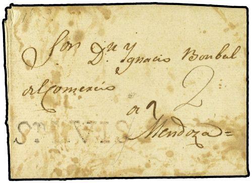 1823 (12-Enero) S. LUIS a MENDOZA. Marca SN. LUIS en rojo oxidado. MUY RARA.