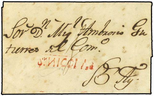 1820 (7-Sept) SALTA a BUENOS AIRES. Marca lineal SN. NICOLAS en rojo. MUY RARA.