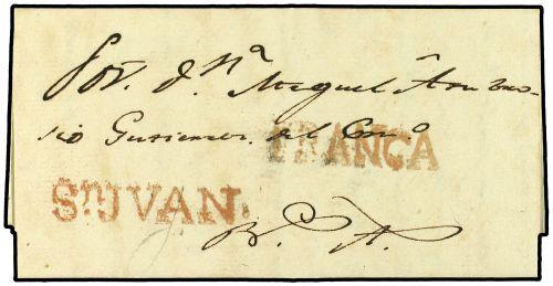 1818 (2-Diciembre) SAN JUAN a BUENOS AIRES. Marcas SN. JUAN y FRANCA ambas en rojo.