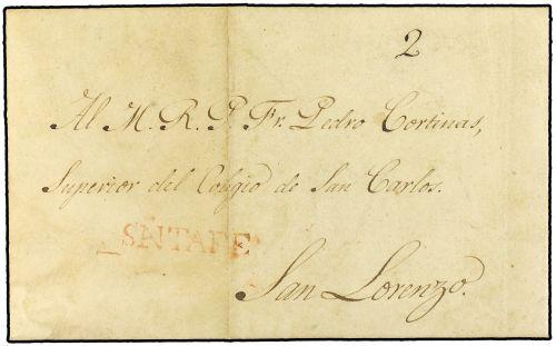 1852 (7-Febrero) SANTA FE a SAN LORENZO. Marca lineal SANTA FE.