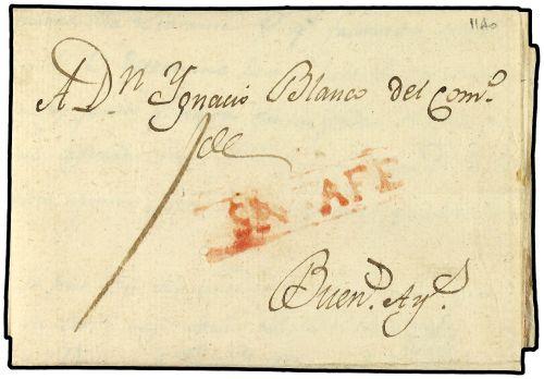 1813 (12-5) STA. FE a BUENOS AIRES. Marca SANTA FE en rojo. Rara en carta completa.