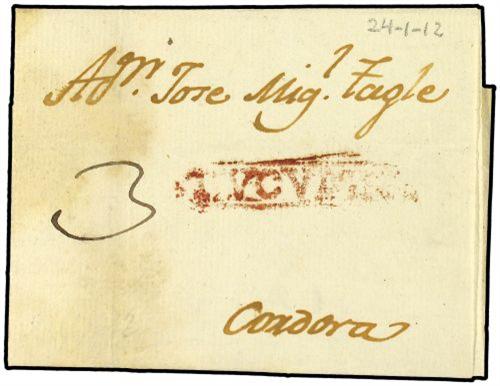 1812 (24-1) TUCUMAN a CORDOBA. Marca TUCUMAN (nº 1) n rojo. MUY RARA.