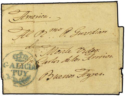 1839 (27-Abril) TUY a BUENOS AIRES. Marca GALICIA / TUY en azul.