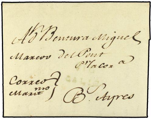 1802 (8-Diciembre) VIGO a BUENOS AIRES. Marca VIGO / GALICIA, manuscrito "Correo Maritimo".