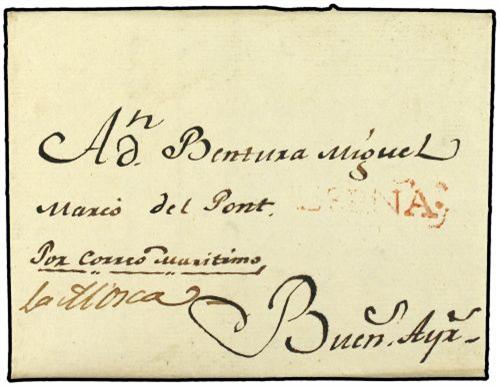1803 (13-Junio) VIGO a BUENOS AIRES. Marca ESPÑA en rojo aplicada en Buenos Aires, manuscrito "Por Correo Maritimo, La Mosca".
