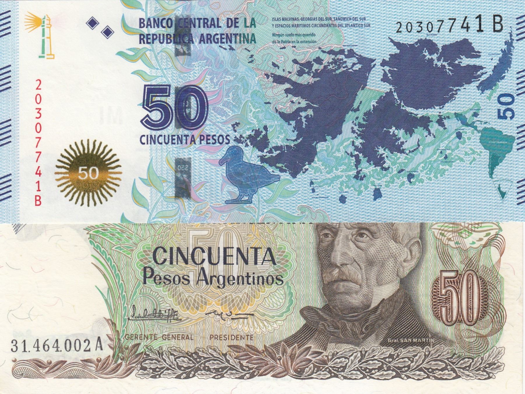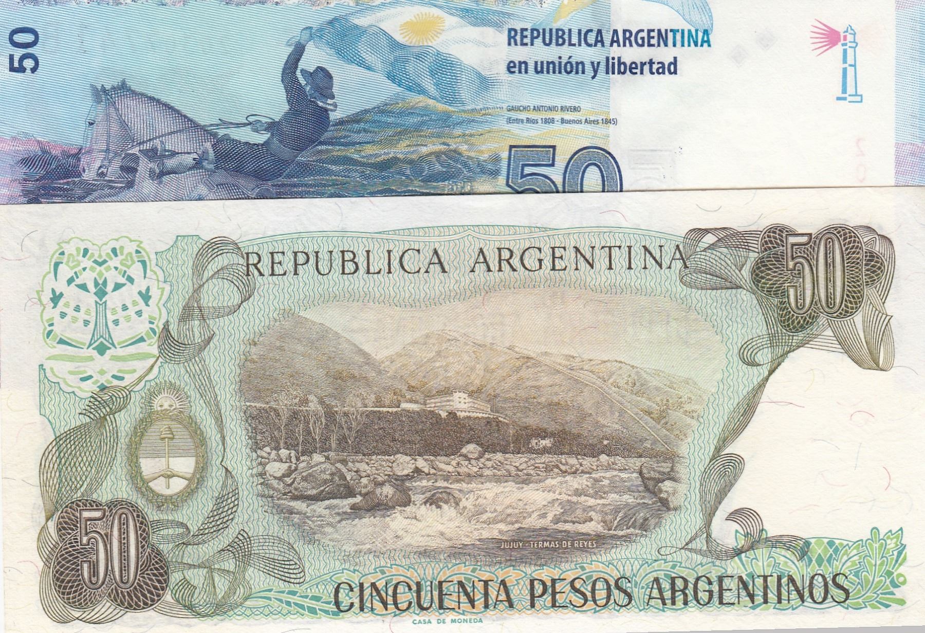 Argentina, 50 Pesos and 50 Pesos, 1983-85/ 2015, UNC, (Total 2 Banknotes)