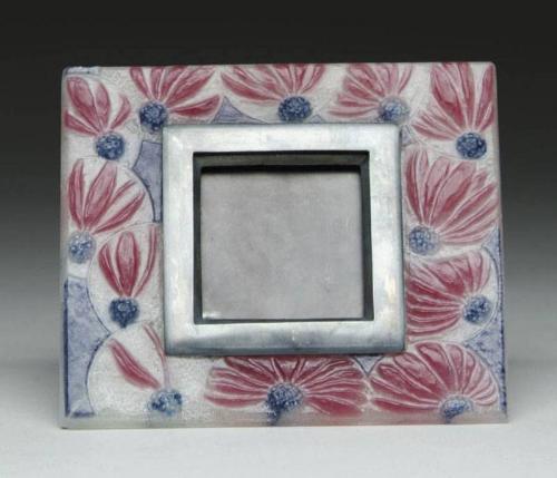 ARGY ROUSSEAU PATE DE VERRE FRAME. Lovely, choice example with flowers in red, white and blue. Signed on the top left of the frame "G. ARGY-ROUSSEAU". SIZE: 4" x 4-3/4". CONDITION: Very good to excellent. 5-62382
