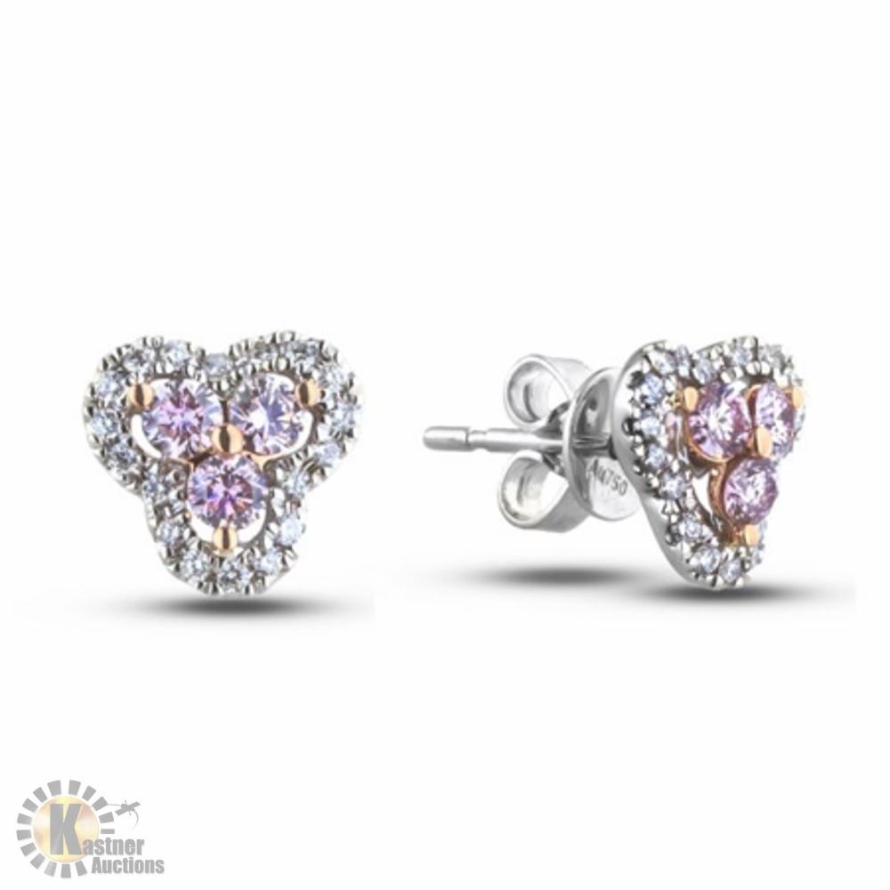 METAL: 18K WHITE AND ROSE GOLD DIAMONDS STONE SHAPE: ROUND BRILLIANT CENTER STONES CARAT WEIGHT: 6= 0.34 CTS T.W. CLARITY: VS-SI COLOR: ARGYLE PINK CUT: ROUND BRILLIANT SIDE STONES: 36= 0.18 CTS T.W. CLARITY: VS COLOUR: G-H CUT : ROUND BRILLIANT RETAIL $2,800.00 SKU:172-15747