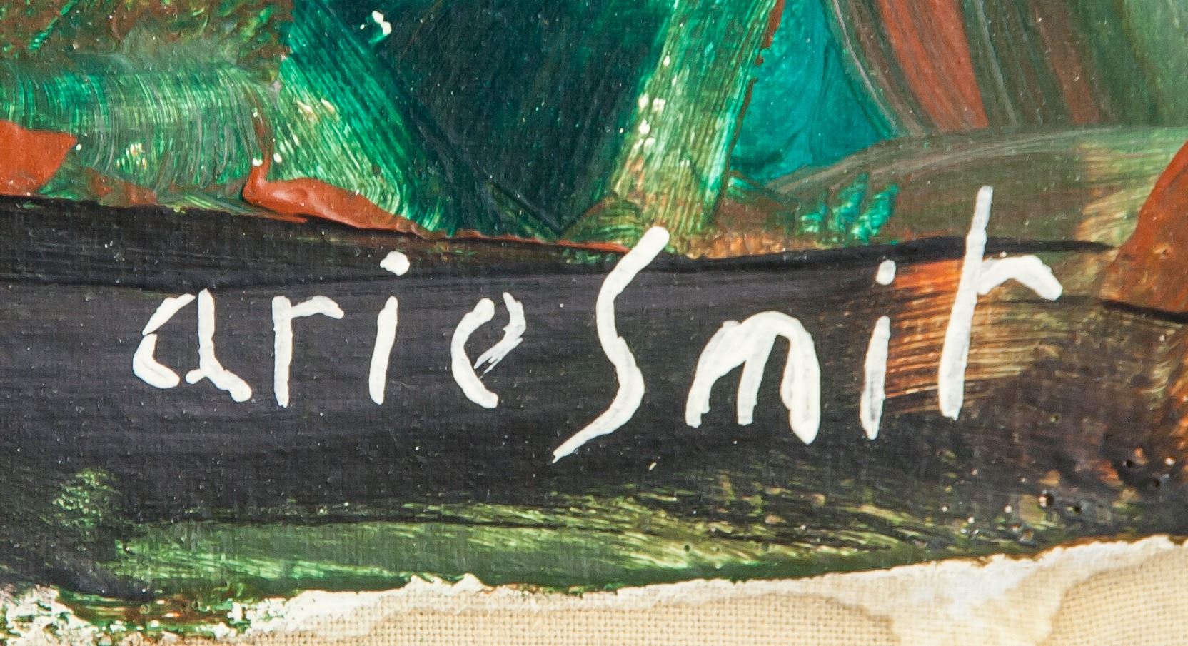 Oil on canvas. Featuring mountain landscape scene. Signed and in the manner of Arie Smit (Indonesian, b. 1916). 18.1 x 18.3 inch (46 x 46.5 cm). Arie Smit was a Dutch-Indonesian artist known for his expressive depictions of the tropical landscapes of the island of Bali. Born Adrianus Wilhemus Smit on April 15, 1916 in Zaandam, Netherlands, Smit studied at the Academy of Arts in Rotterdam, Netherlands before joining the Royal Netherlands East Indies Army. Spurred by his desire to explore the Indonesian archipelago, Smit met with misfortune as he was captured by Japanese military during World War II. He would spend three years in forced labor, building architecture and civil structures in Burma. After release in 1945, he entered what was now the Republic of Indonesia and subsequently became an Indonesian citizen. He taught lithography at the Institute Teknology Bandung in West Java before moving to Bali in 1956. Immediately enthralled by its nature and culture, and spent the remainder of his life there until his death on March 23, 2016 in Denpasar, Bali. Today, his works can be found among the collections of the Neka Art Museum (where the Arie Smit Pavilion was opened at the Neka Art Museum in 1994), the Penang Museum in Malaysia, and the Museum Bali in Denpasar. PROVENANCE: Private collection (Toronto, ON)
