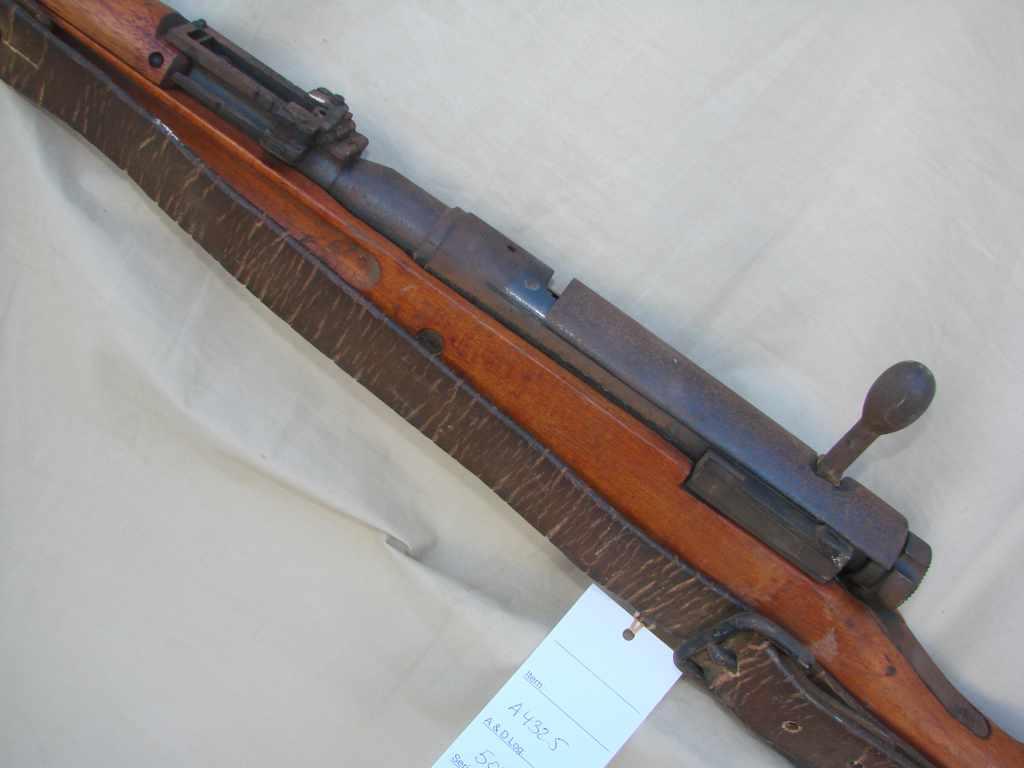 ARISAKA TYPE 99, OVERAL LITE RUST, MATCHED BOLT W/ MONO POD, DUST COVER AND SLING, CRACK AT WRIST, "MUM" INTACT(L)A4325, 50402