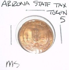 ARIZONA STATE 5 TAX LARGE TOKEN *RARE MS HIGH GRADE**!! ***Coin, Currency & All Items Listed in this auction - Grades, Conditions and Values are not Safe Deposit Coins LLC Responsibilty. Grades, Condition and Values are determined by Consigner(s) & Buyers ONLY***