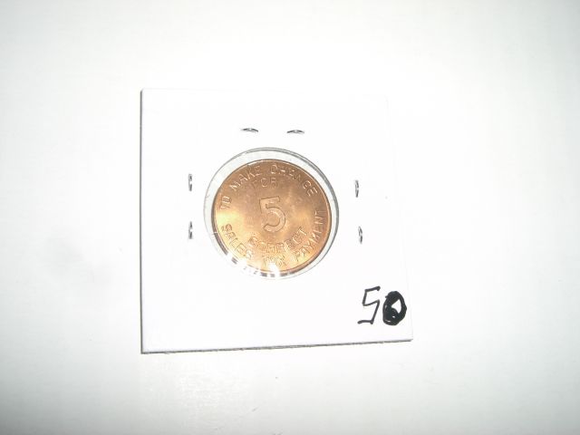ARIZONA TAX TOKEN 5 LARGE *EXTREMELY RARE MNIT STATE GRADE - REAL NICE TAX TOKEN*!! ***Coin, Currency & All Items Listed in this auction - Grades, Conditions and Values are not Safe Deposit Coins LLC Responsibilty. Grades, Condition and Values are determined by Consigner(s) & Buyers ONLY***