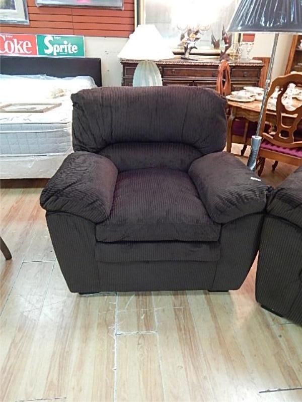 ARM CHAIR - COCOLATE CORDUROY UPHOLSTERED WITH ACCENT PILLOWS - NEW