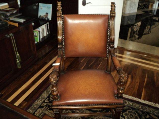 ARM CHAIR, LION'S HEAD, OAK & LEATHER {print sequence:} 099