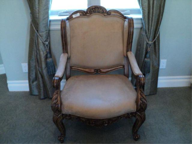 ARM CHAIR, UPHOLSTERED W/ WOOD {print sequence:} 158