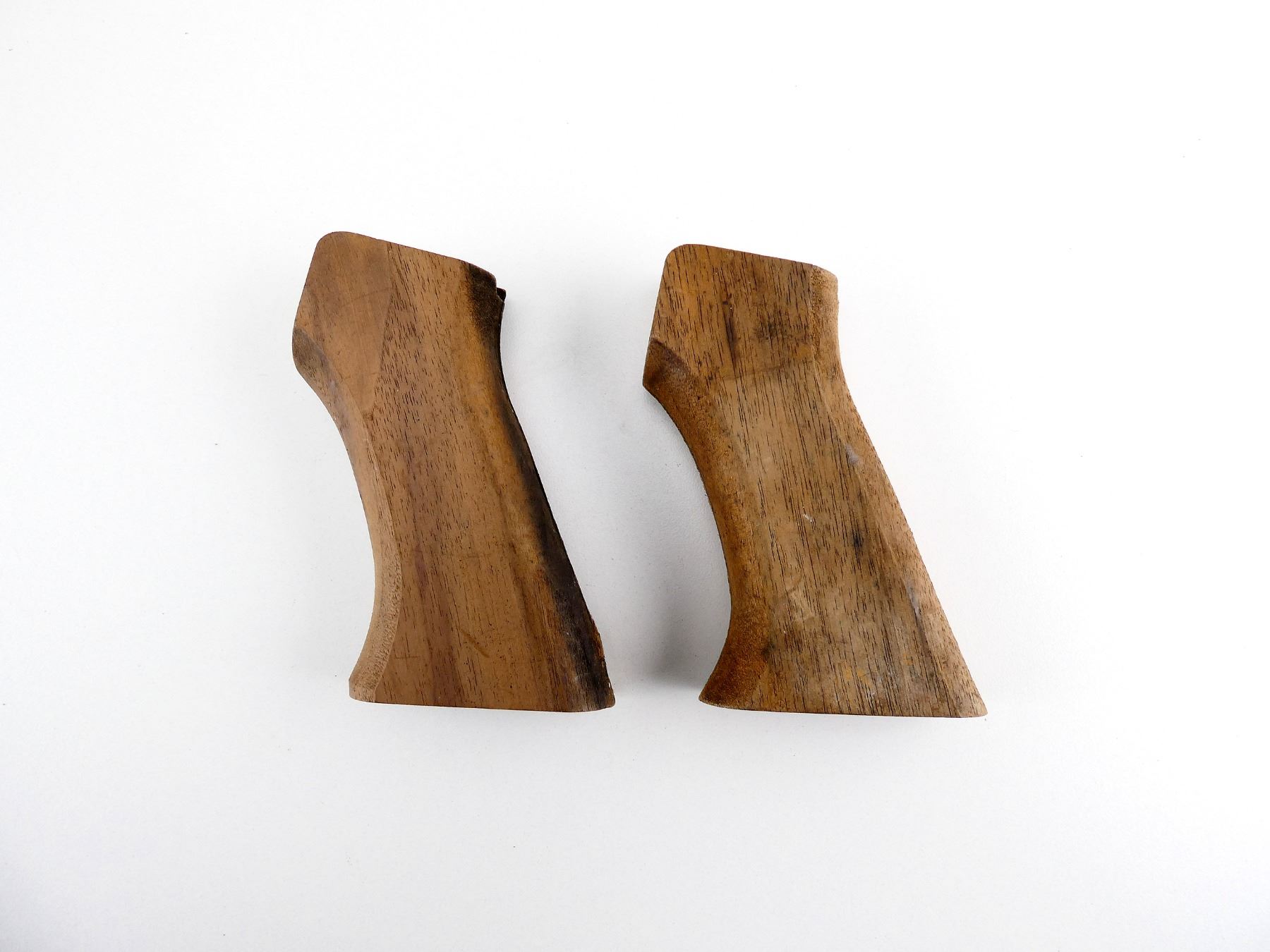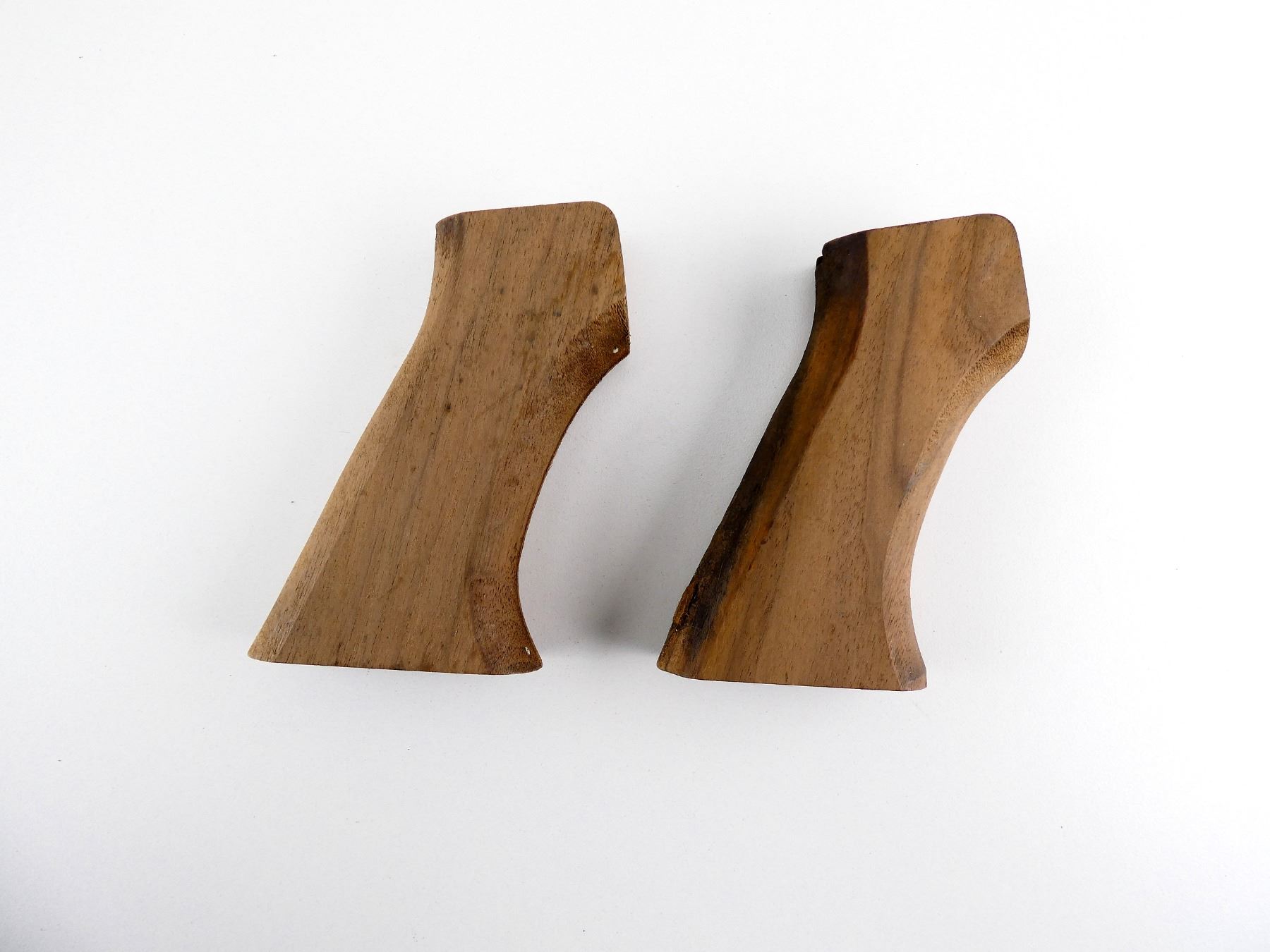 LOT INCLUDES; (2) WOOD CONSTRUCTION, UNFINISHED, UNMARKED, MISSING MOUNTING SCREWS, OAL APPROX. 4.5". MAY REQUIRE FITTING. SEE PHOTOS.