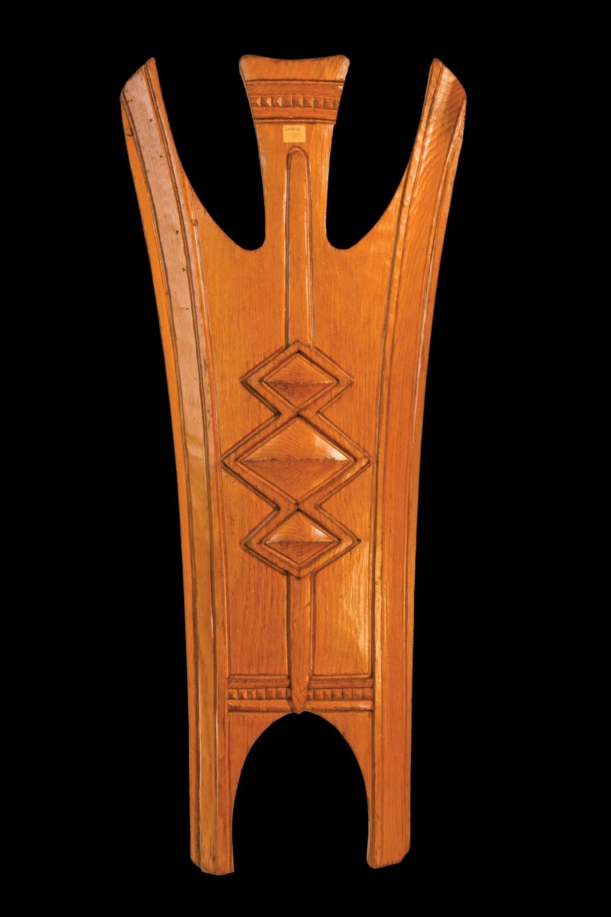 (1960s) Very rare piece of art from the famous Armet & Davis design firm out of Los Angeles. The piece was created by George Nakashima and carved by Cass Carving. OA purchased their inventory upon their closure and has never run this pattern. 36"x16". VG+ with typical wear.