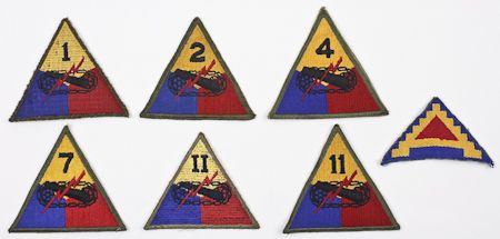 Good lot of seven armored division shoulder patches, most World War II vintage, no duplicates, overall very good.