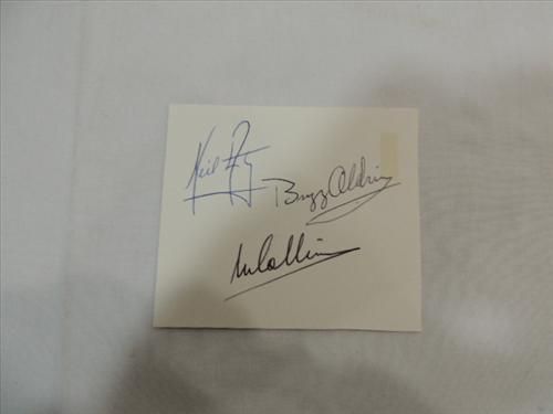NEIL ARMSTRONG, BUZZ ALDRIN & MICHAEL COLLINS CUT SIGNATURE AUTOGRAPH NO COA. AS SHOWN. VIEW PICTURE FOR DETAIL. PLEASE BE ADVISED, AND INFORMED REGARDING SIGNATURES OR AUTOGRAPHS THAT WE SELL AT AUCTION: WE ARE NOT AUTHENTICATORS, AND WE DO NOT AUTHENTICATE, OR VALIDATE ANY AUTOGRAPHS OR SIGNATURES THAT WE OFFER AT AUCTION. SOME AUTOGRAPHS OR SIGNATURES MAY COME WITH AN AUTHENTICATION FROM ANY ONE OF LITERALLY HUNDREDS OF AUTHENTICATORS ACROSS THE COUNTRY, AND AROUND THE WORLD. WE DO NOT ENDORSE ANY AUTHENTICATOR, NOR DO WE GUARANTEE THAT ANY AUTOGRAPH OR SIGNATURE IS AUTHENTIC, OR THAT IT WILL PASS AUTHENTICATION BY ANY AUTHENTICATOR. ALL AUTOGRAPHS OR SIGNATURES ARE SOLD