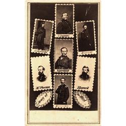 <b>660. ARMY OF THE WEST </b>A good war-date CDV depicting the 1864 commanders of the Union Army of the West, showing all the major Union commanders who were active while Sherman was fighting to secure Atlanta from the Confederates. Backstamp by Anthony, New York from a Brady negative. Two minor scratches affect the albumen, else very good.<b> $150-200</b>