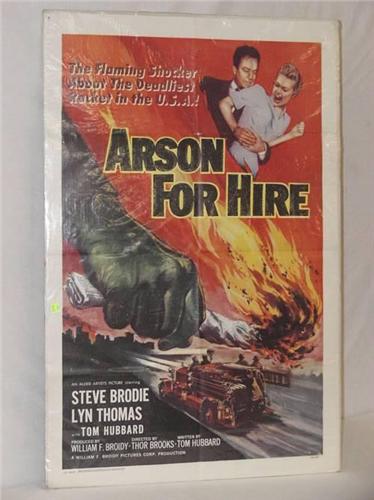 ARSON FOR HIRE MOVIE POSTER STARRING STEVE BRODIE, LYN THOMAS and OTHERS-A. WILLIAM/F. BROIDY PICTURES CORP. PRODUCTION (41" X 27") - #58/440;