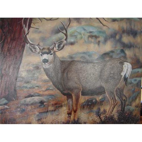 <tr><td>Title:ART ANTIQUE OIL CANVAS OLD BUCK DEER SCENE</td></tr>