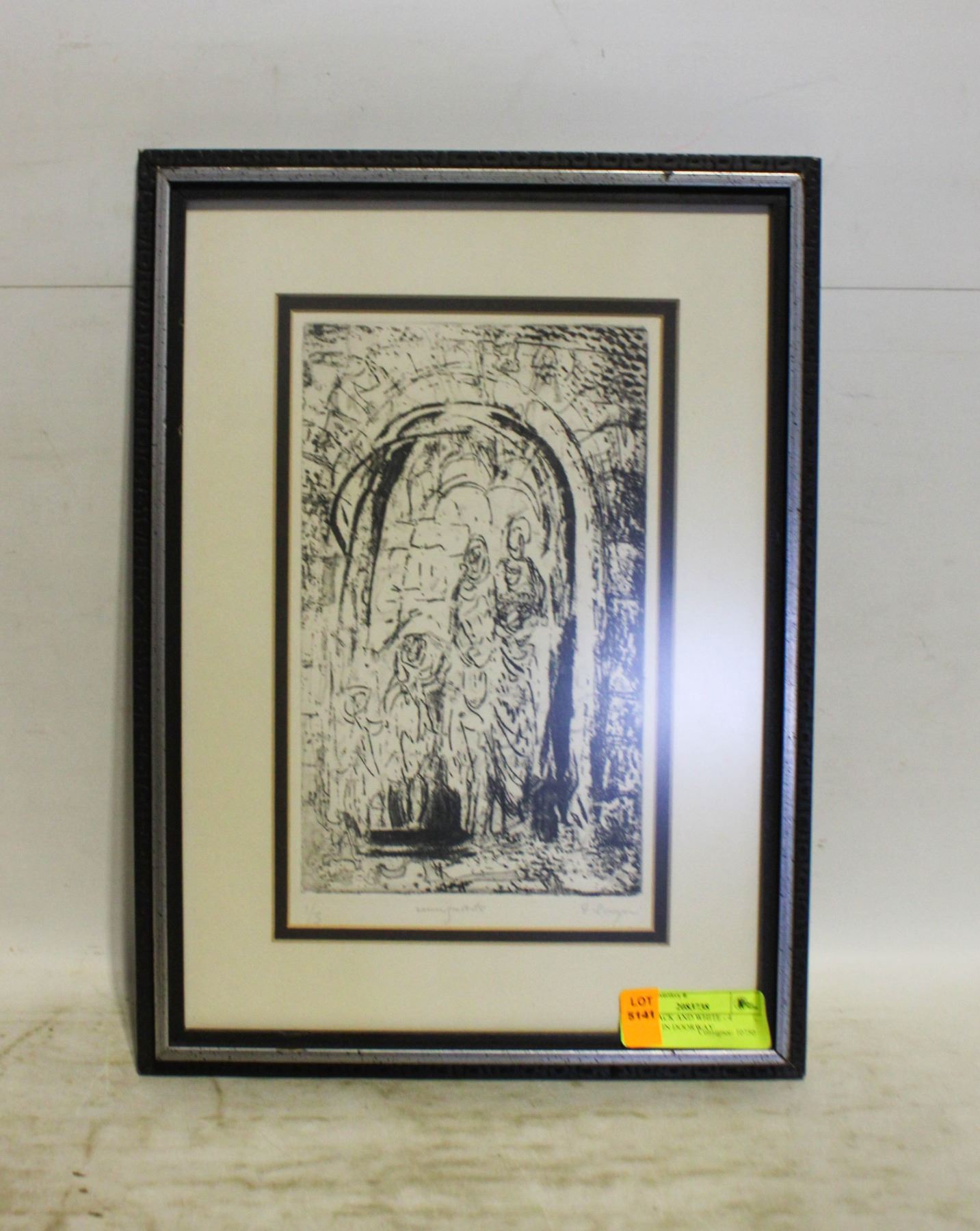 TALL FIGURES WITHIN AN ARCHED STRUCTURE POSSIBLY RELIGIOUS OR HISTORIC DEPICTION