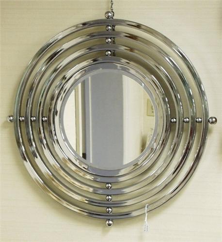ART DEC0 - A pair of French circular beveled glass wall mirrors, each set in a chromed frame of concentric circles. Mirror diameter 12", outer diameter 24". French, circa 1935.