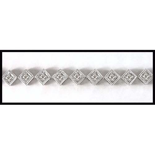 Interesting 18K white gold bracelet is set with 27 diamonds that total about one carat. Design is a modern rendtition of the Art Deco style. Measures 17.5cm (7") long.