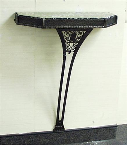 ART DECO - A good French wrought iron framed console table with veined black marble top. 24" wide, 10" deep, 35" high. Circa 1935.