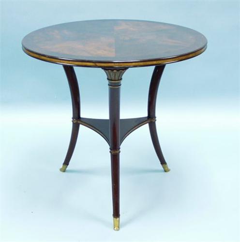 ART DECO - A highly polished French mahogany tripod table. The circular top raised on curved tapered legs. Top 28" dia., 28" high.