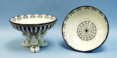 ART DECO - A pair of early 20th century porcelain centrepieces. The painted circular bowls are held up by three children as the base. With impressed mark and numbered 7377. 12" diameter, 8" high. Circa 1935.
