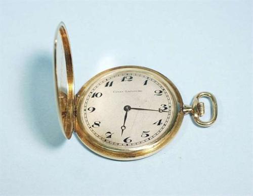 ART DECO - An ultra thin gents pocket watch in 18 kt. yellow gold hunting case by Coven-Lacloche. Face with black arabic numbers, interior with inscription. 1200-1500