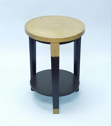 ART DECO - An unusual Austrian gilt metal covered ebonised wood occassional table with gilt metal top. Top 17" dia. 24" high. Circa 1935. 2000-2500