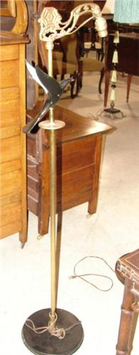 ART DECO BRASS FLOOR LAMP. Decorated with figural bird decoration at top of stem. 55" H